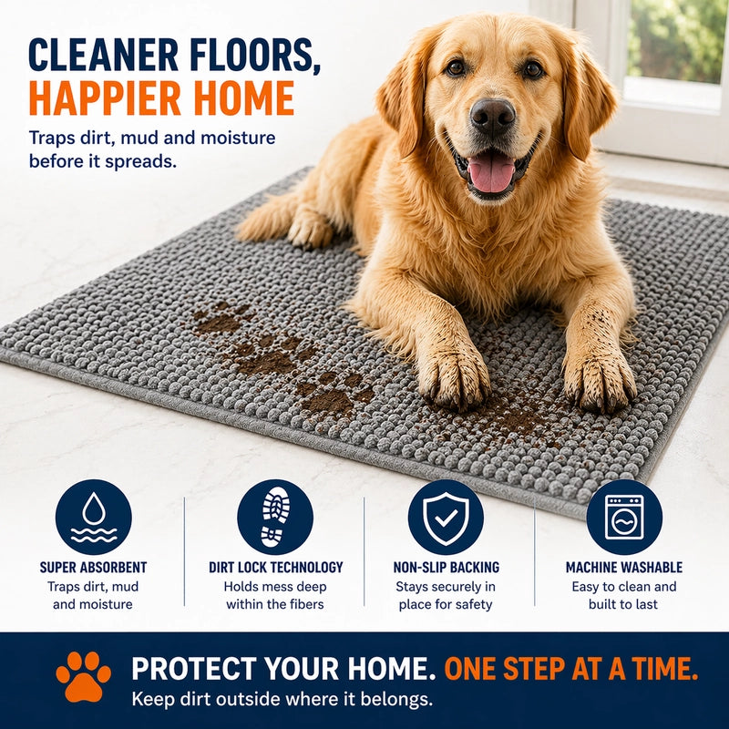 Tired of scrubbing muddy paw prints every time your fur baby comes inside? This isn't just a mat; it's your secret weapon against dirt, moisture, and endless cleanup. Imagine spotless floors, happy pets, and a home that always feels fresh. Get ready to reclaim your peace of mind and say goodbye to the daily mud struggle for good!