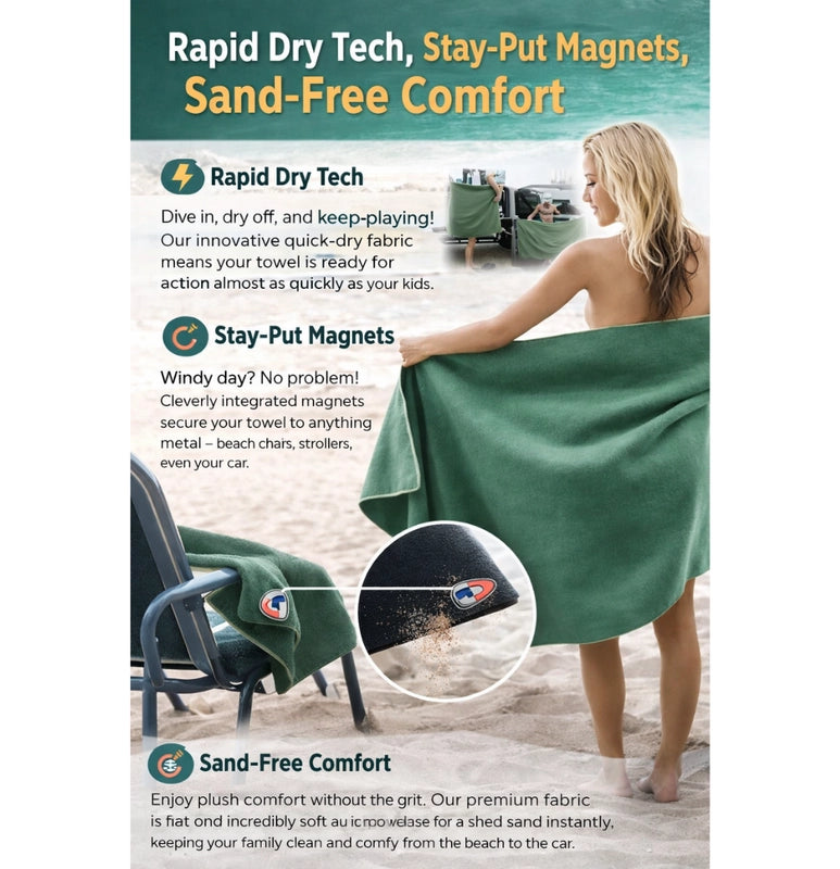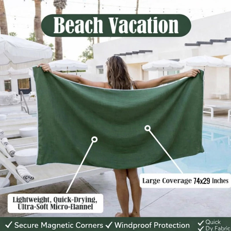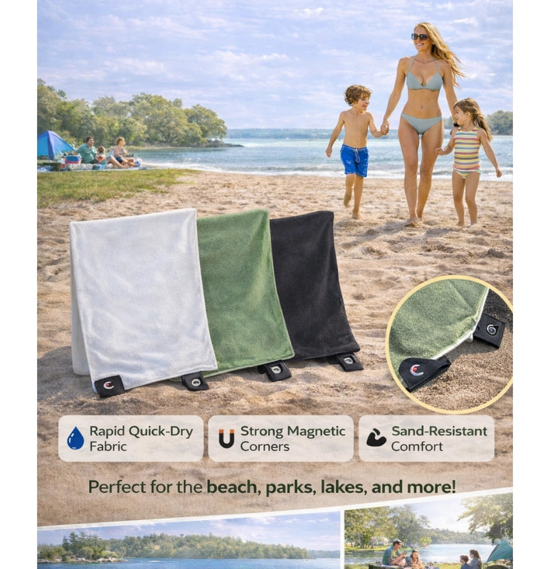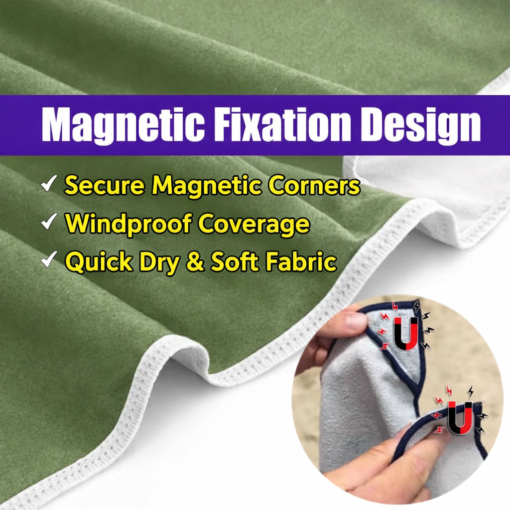 Tired of sandy, soggy towels? Our Magnetic Quick-Dry Beach Towel is your family's new hero! Stays put, dries fast, so you can enjoy endless, hassle-free beach days. More fun, less fuss!