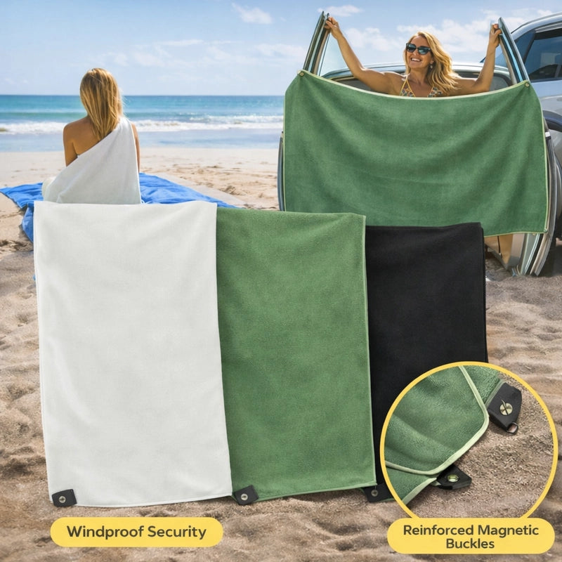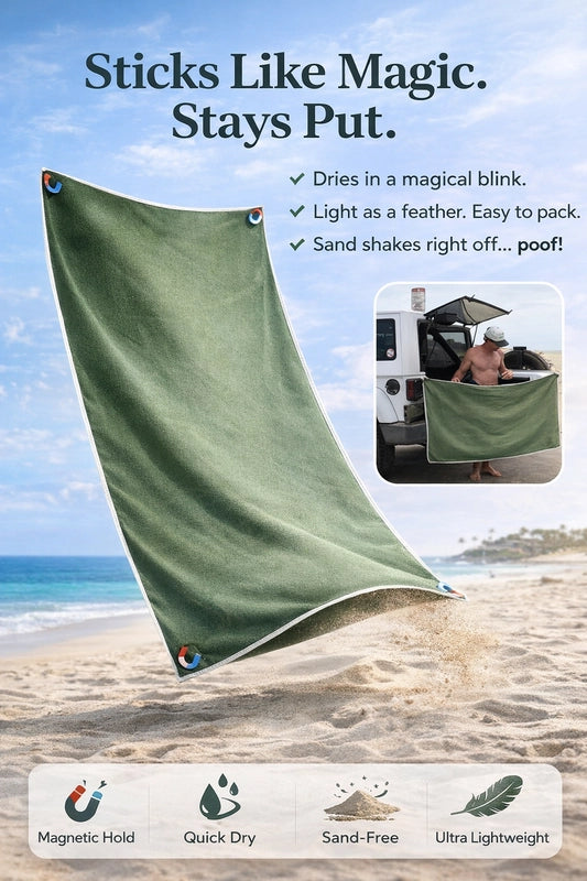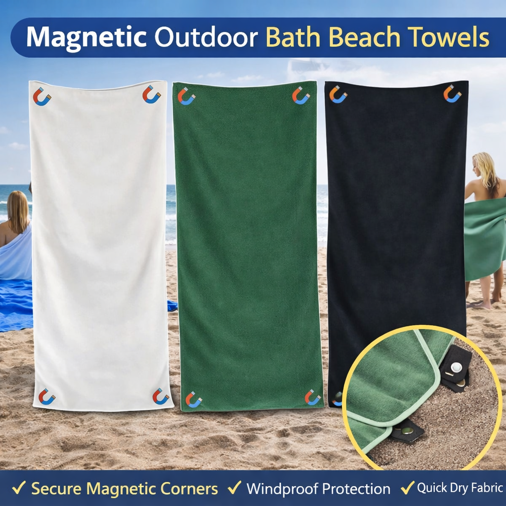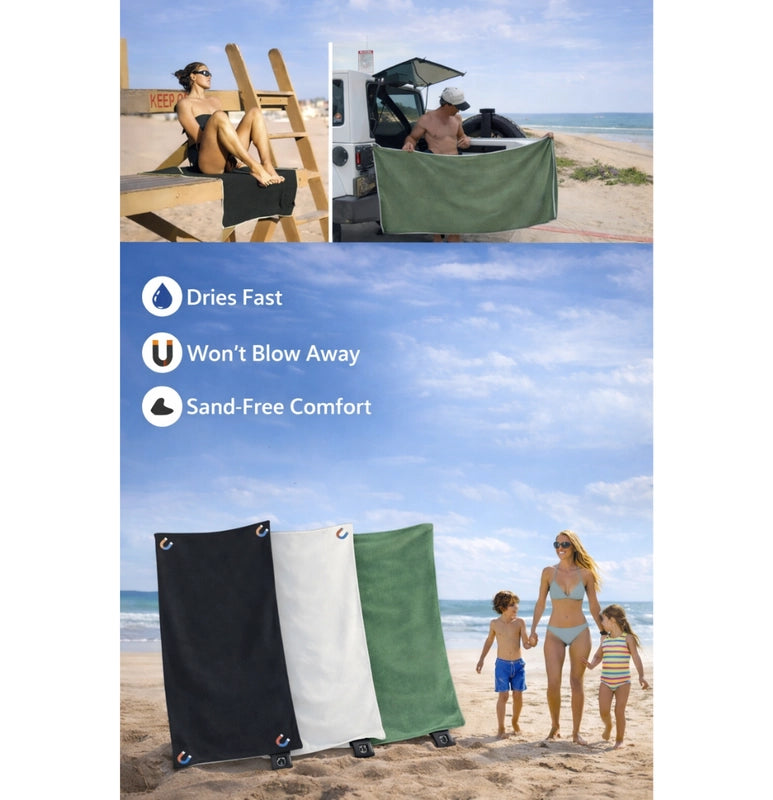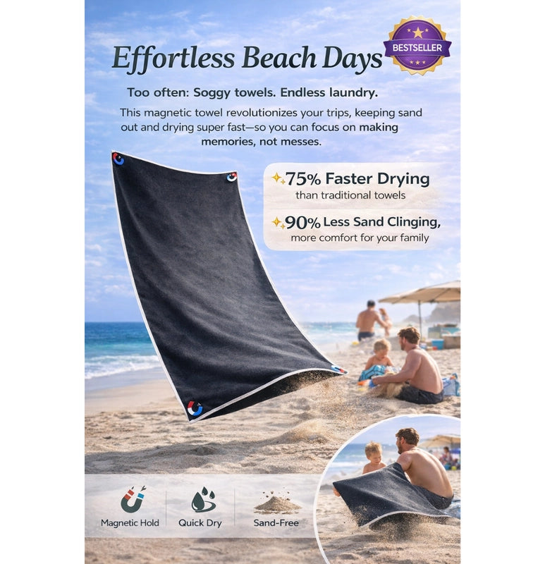 Tired of sandy, soggy towels? Our Magnetic Quick-Dry Beach Towel is your family's new hero! Stays put, dries fast, so you can enjoy endless, hassle-free beach days. More fun, less fuss!