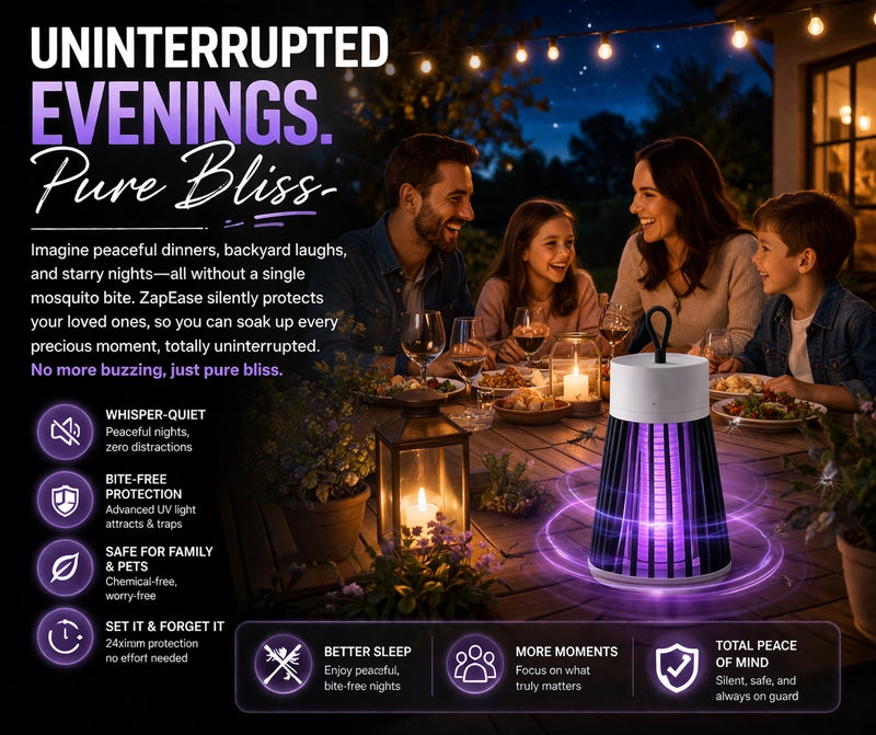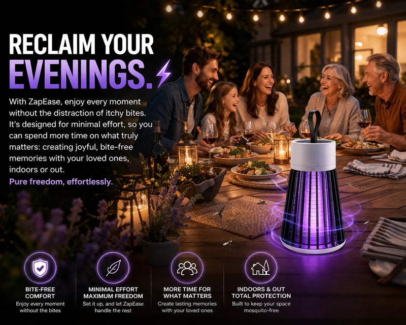 Imagine dinners, laughs, and starry nights without a single bite. ZapEase quietly protects your space, so every moment feels calm and carefree. No buzzing, no swatting, just pure, uninterrupted bliss.