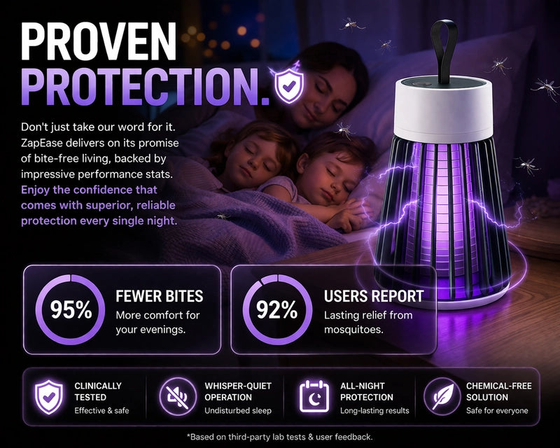 Don't just take our word for it. ZapEase delivers on its promise of bite-free living, backed by impressive performance stats. Enjoy the confidence that comes with superior, reliable protection every single night.